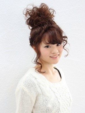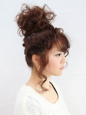 トップのお団子を、どれだけ「ゆるふわ」っとボリュームアップ出来るかがポイントです!!フロントにデコされた編み込みに、ツイストループを加えているのでオシャレ感がさらにアップしてます*